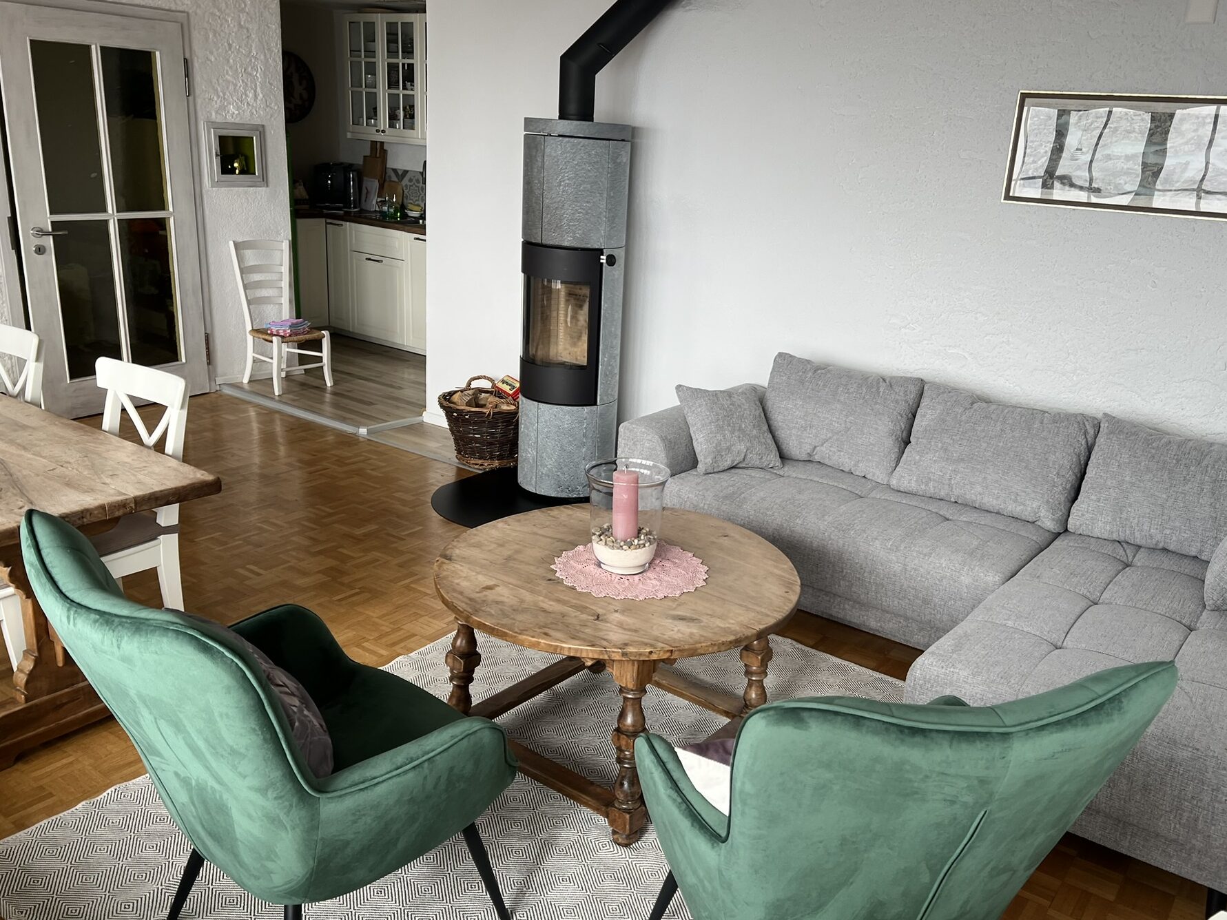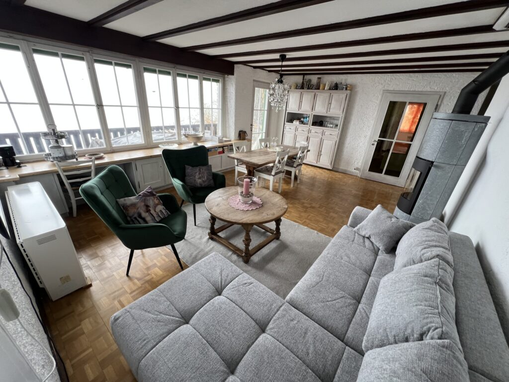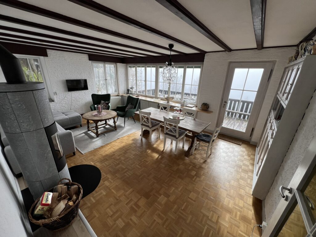 Der rustikale Holztisch lädt ein zu einem feinen Fondue oder zu interessanten Diskussionen mit Freunden oder Familie. Die grosszügige Fensterfront lässt Träumer in die Ferne schweifen und bietet Berg-Fans eine atemberaubende Aussicht auf die Alpen. Im Winter liegt im Unterland häufig zäher Hochnebel, Kaltbad ist dann meistens über der grauen Suppe und die Wintersonne wärmt wunderbar auf.